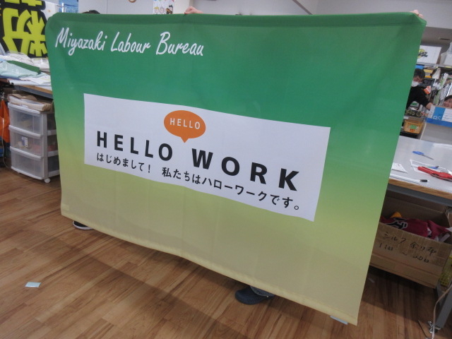 M様、ブースセット(タペストリー、テーブルクロス、ロールアップバナー、イスカバー)「ハローワーク」