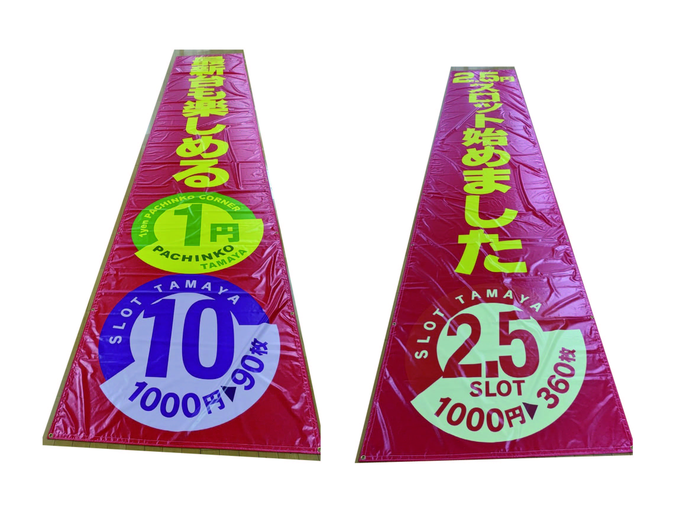 玉屋様、ターポリン懸垂幕「2.5円スロット」