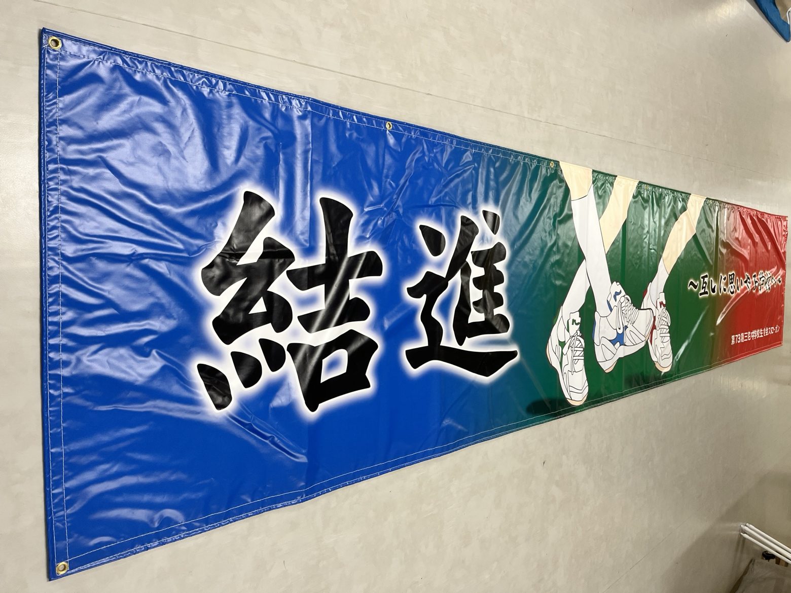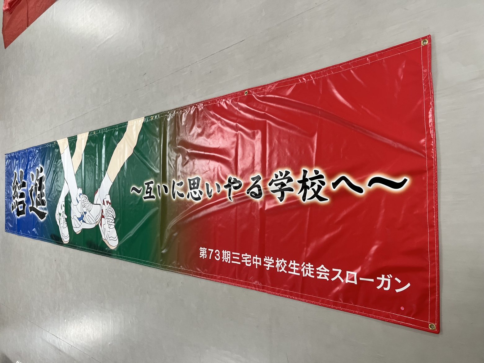 三宅中学校、ターポリン横断幕