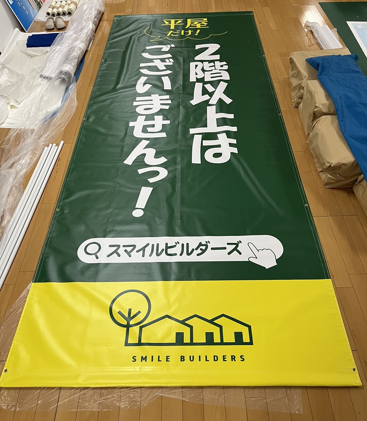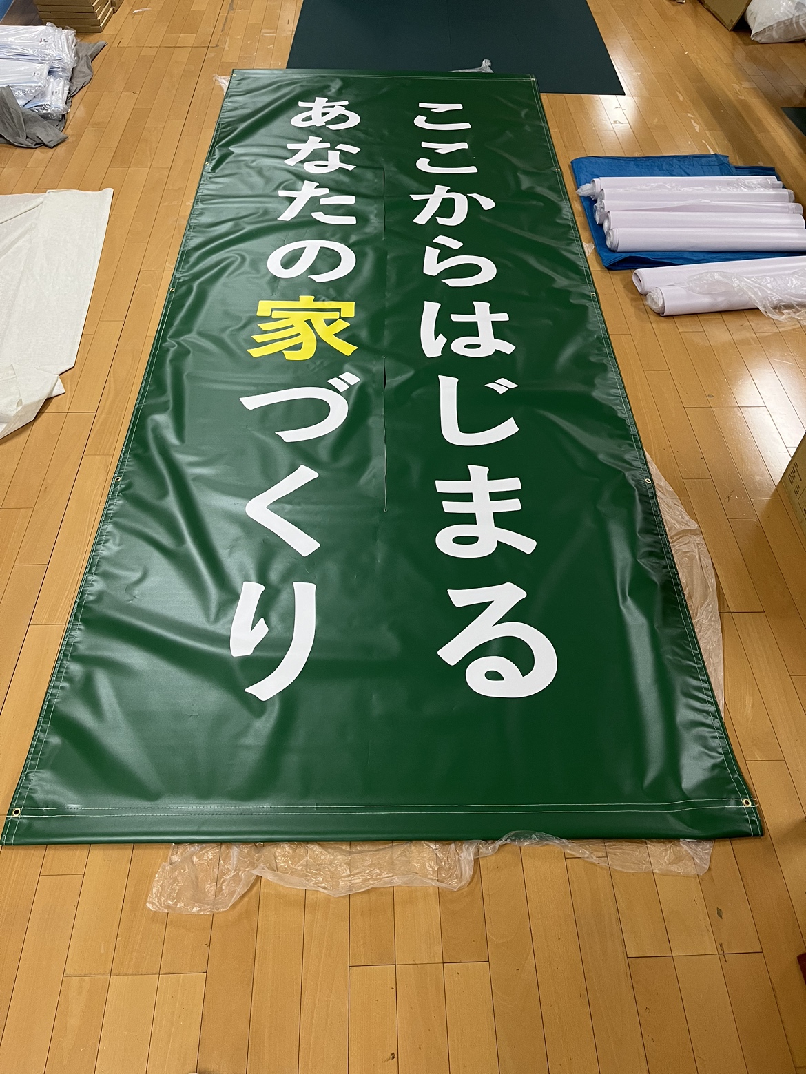 I様、ターポリン懸垂幕「ここからはじまるあたなの家づくり」