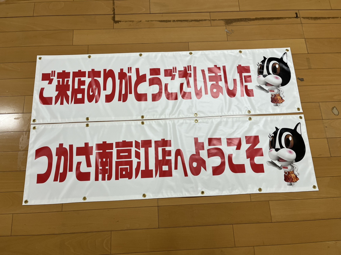 T様、ターポリン横断幕「ご来店ありがとうございました」