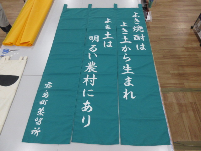 霧島町蒸留所様、スラブクロスのれん「明るい農村にあり」
